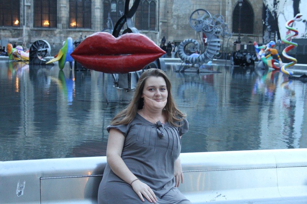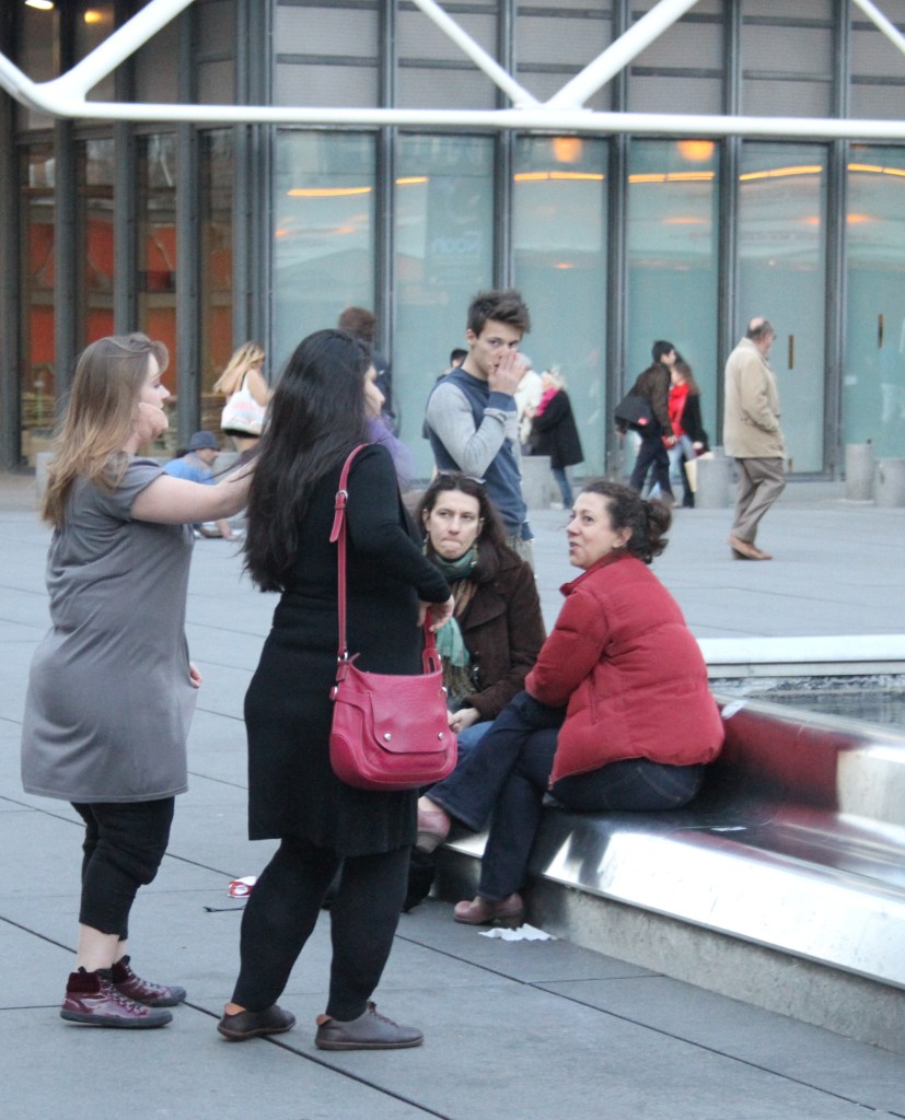 Il s’agit d’un travail collectif, qui s’est déroulé près du centre Georges-Pompidou à Paris, à côté d’une fontaine, le jeudi 20 mars 2014. Lors de cette promenade, les performeuses de (PLOMION Caroline et moi même) ont gonflé leur silhouette en bourrant de tissus leurs vêtements, et en portant un demi-masque sur le visage et le cou, comme une prothèse. Autrement dit, elles se sont fabriqué un nouveau corps en apparence, pour que ce corps devienne un médium constructif d’une nouvelle identité. L’objectif de cette performance était de se mettre en regard en prenant des photos l’une de l’autre, et d’attirer l’attention du spectateur, afin de générer chez lui une réflexion sur le corps et l’apparence en général. L’intérêt de la démarche était, par un faux corps ou un corps fabriqué qui se pose en tant qu’œuvre d’art, d’essayer de changer la perception ou la compréhension des gens sur les conditions de mode et de beauté. Cette œuvre questionne la notion de corps en tant qu’un objet de désir ou une image identitaire, et se pose comme commentaire expérimental d’une réalité sociale.